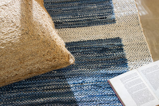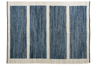 Handwoven flatweaves of recycled denim, the Denim Collection drapes beautifully-like your best-fitting pair of jeans. And just like your favorite jeans, they're washable. Woven in a melange of blues, their simple geometric shapes have a faint 1920s influence; a little bit of art deco meets Georgia O'Keefe's Abiquiu casita. There's a reason denim is a wardrobe staple: it's affordable, durable, good-looking, and versatile, and these rugs are no exception. Plus, textile remnants which would have ordinarily languished in a landfill are given a new life.