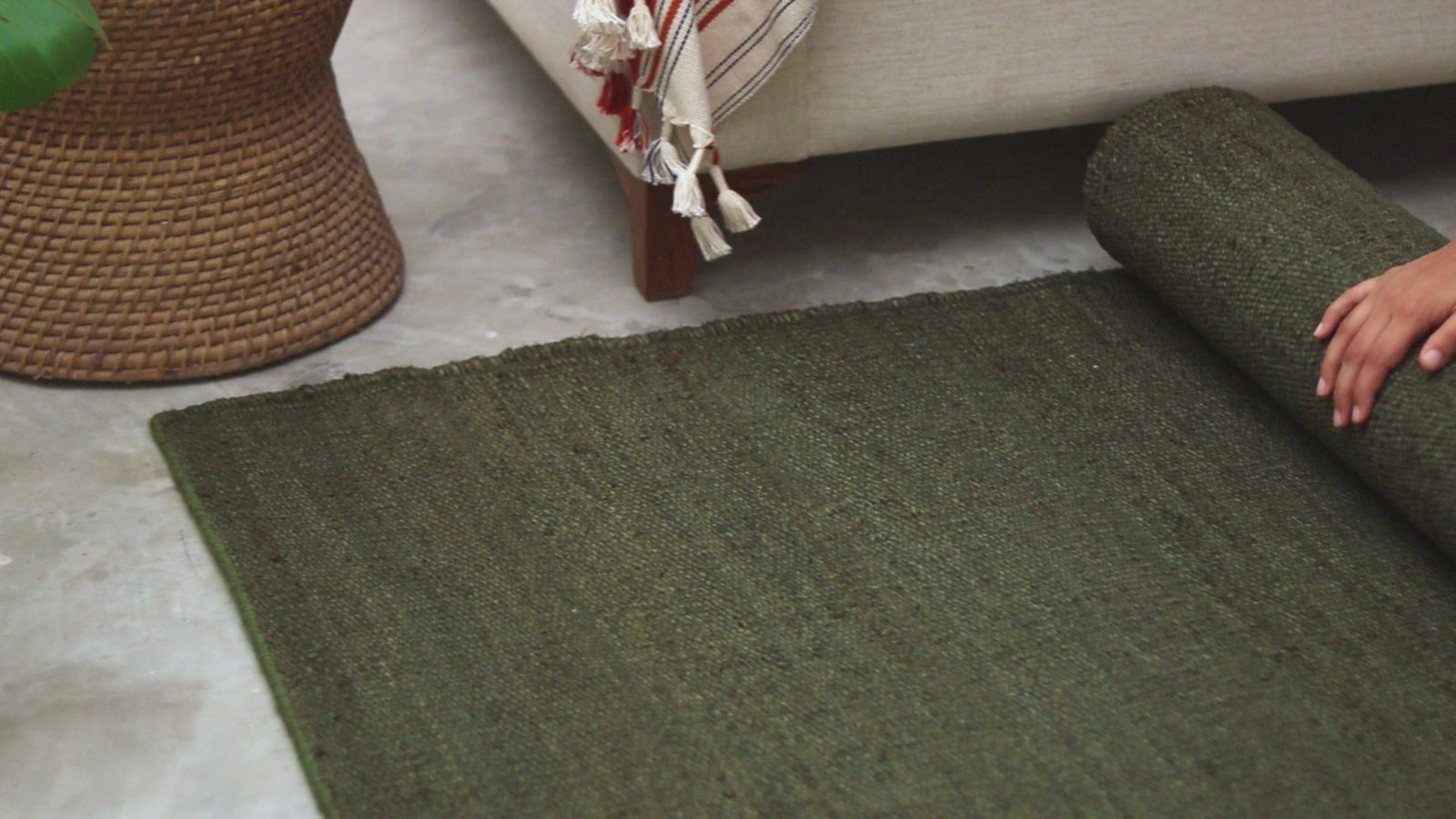 Because Hart is so finely woven, moisture in the air can occasionally make its edges curl up. A simple solve for this is to bend back that corner of the rug so you can curl the edge in the opposite direction, rolling it into a little burrito back and forth until it lies flat. See what we mean here .
