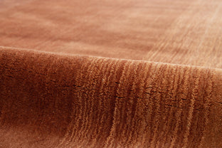 These rugs feature a subtle, striking fade from pale to deeper hues. Noon is a deep, fiery piece, beginning in an almost rust red and transforming into shades of soft tangerine.