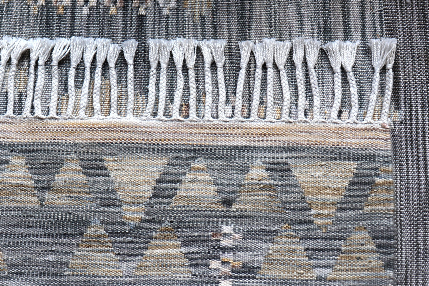 - A handsome, hand-braided fringe woven from threads of the loom