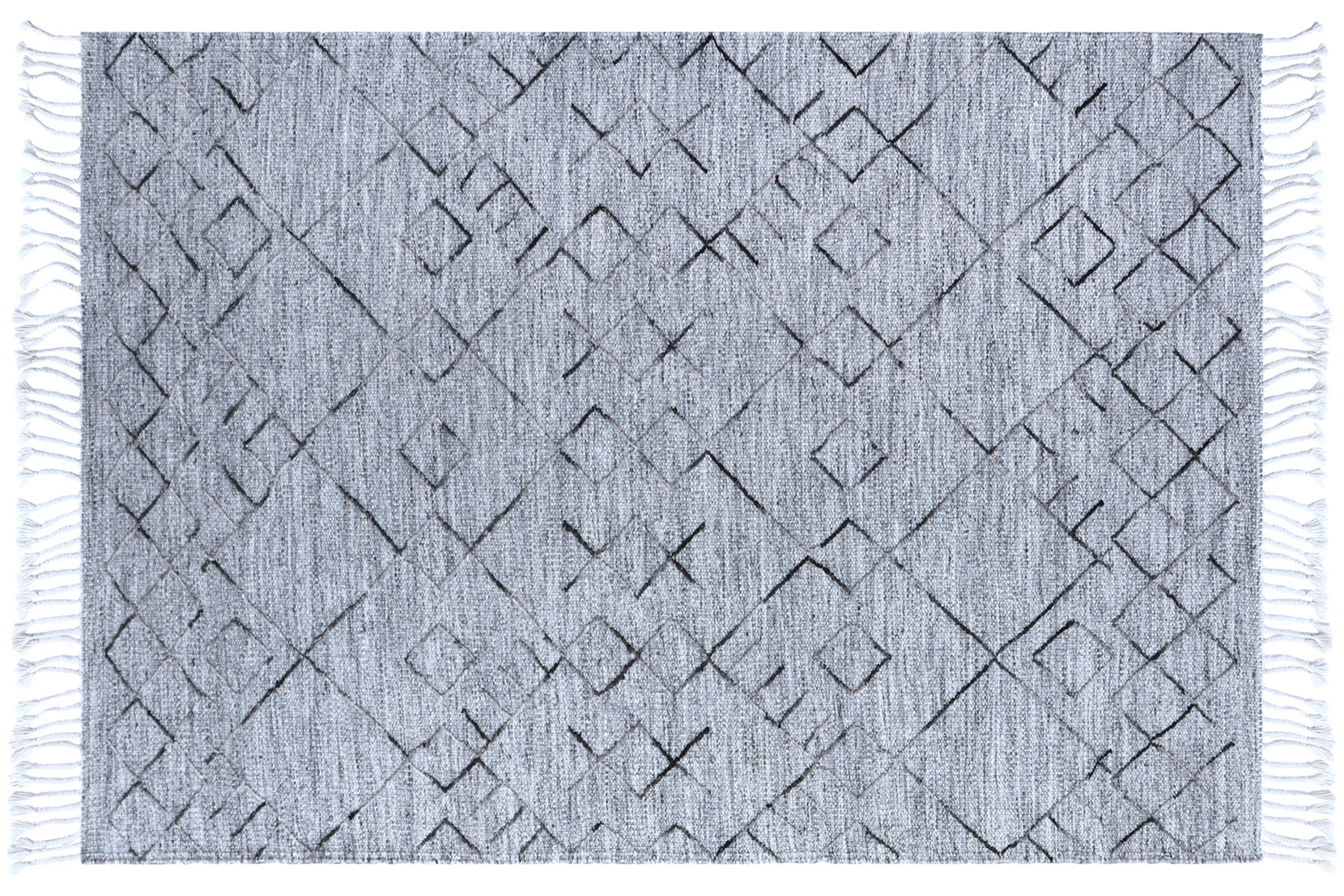 The MaterialsThis rug is flatwoven with a surprisingly soft blend of yarn made from recycled plastic bottles, which are sorted, washed, crushed, and thrice-melted into fibers.