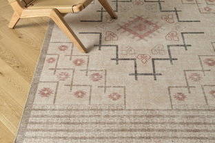 The DesignOur stain-resistant Tende collection draws inspiration from North African funk music and traditional Oushak, or Usak, rug design. Known for their spaciousness and soft color palettes, these popular rugs originated in the western Turkish city of Usak. In these pieces, we've retained that hallmark softness and open composition and added Moroccan-inspired motifs. The Funk rug has a large central medallion, surrounded by fields of geometric flowers.