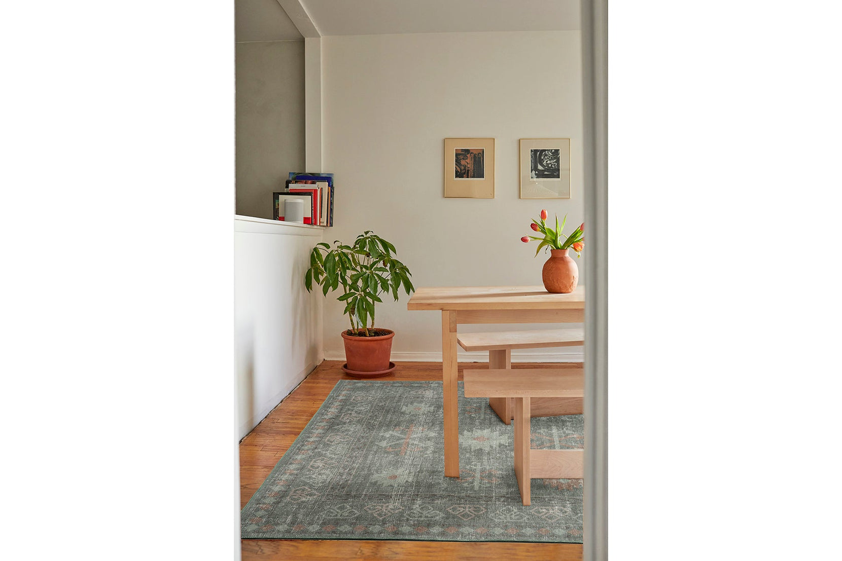 Flexible, soft, and easy to clean, our low pile spot-clean rugs are the latest addition to our easy-care rug repertoire. Their slim, even profile makes vacuuming a dream. Made of recycled materials, these pieces resemble a wool flatweave in touch and appearance—but never shed. Stain and fade-resistant polyester is quickly cleaned with water and mild detergent, while recycled backing keeps the rug strong.