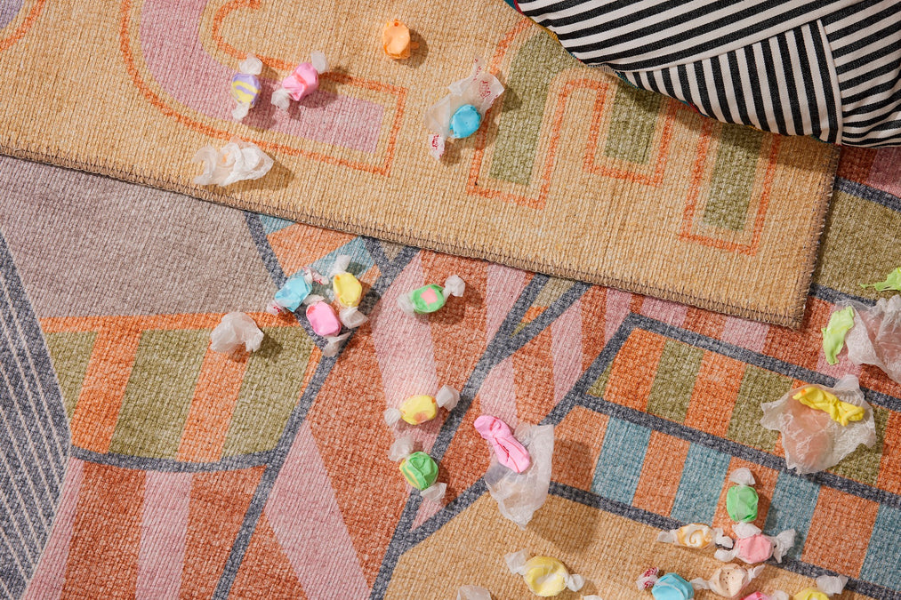 The MaterialSoft as wool with a subtle silk-like sheen, the polyester we use is highly durable, OEKO-TEX certified for safety, mildew-resistant, and extremely easy to clean. These rugs are made with a recycled cotton and mixed-fiber backing that's transformed from collected clothing and other discarded textiles and repurposed into a sturdy, flexible backing material.