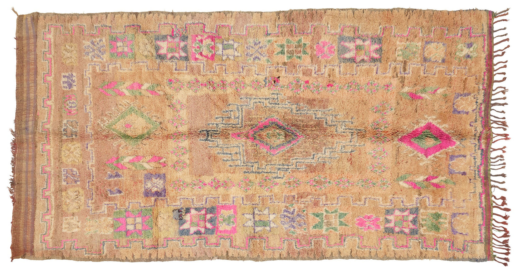 One-of-a-kind vintage rug, hand-knotted near the small city of Boujad in the Chaouia-Ouardigha region of Morocco