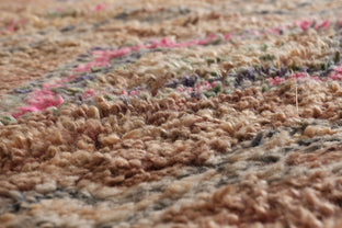 Material DetailsWool, a staple in Moroccan rug design, was considered almost sacred to the Amazigh (Berber) people, whose nomadic lifestyle included sheep and goat herding. In addition to being available, wool is durable, long-lasting, and soft—so it’s super comfy to walk and relax on. In this piece, the wool pile is knotted onto a wool foundation, adding body and helping it hug the floor.