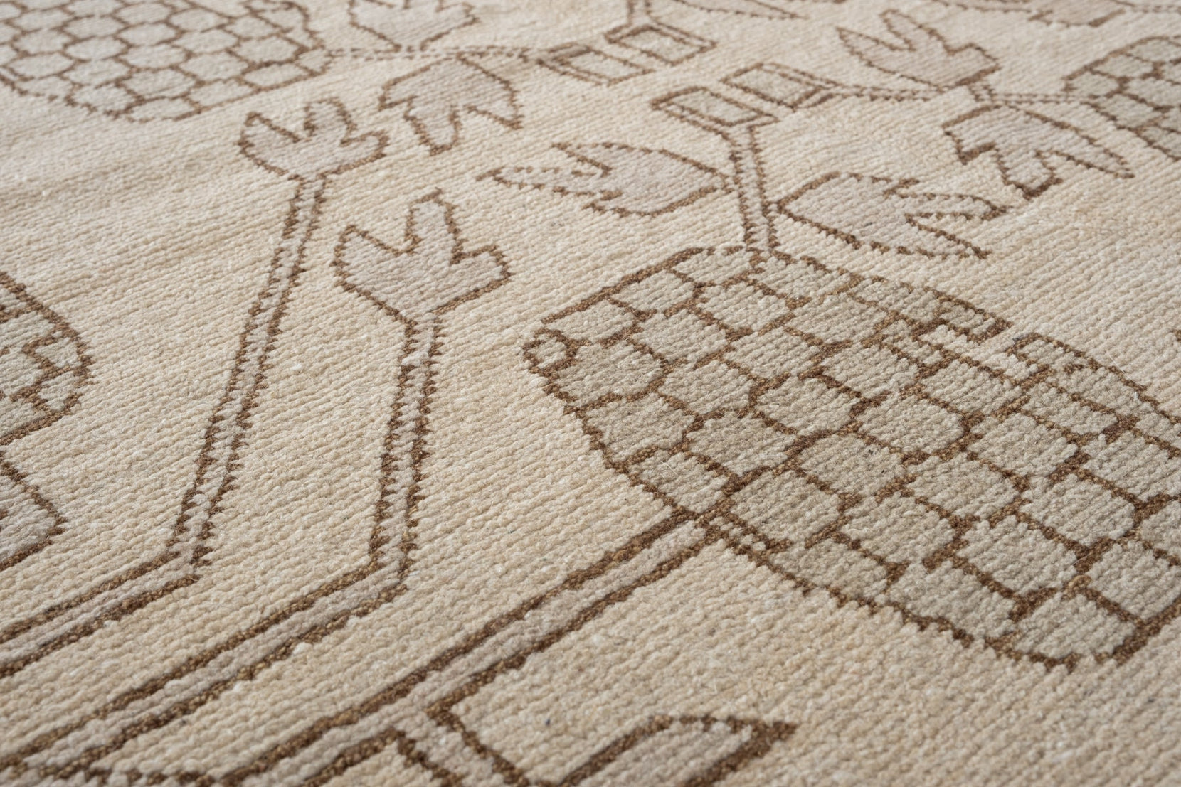Material DetailsWool is the most widely used fiber in Turkish rug design. Not only is it plentiful in supply, it’s durable, long-lasting, and soft—so it’s super comfy to walk and relax on. This wool pile is knotted onto a cotton foundation, another popular choice in rug design. The cotton used is rigid, strong, and provides a sturdy foundation that’s designed to last a lifetime—or ten.