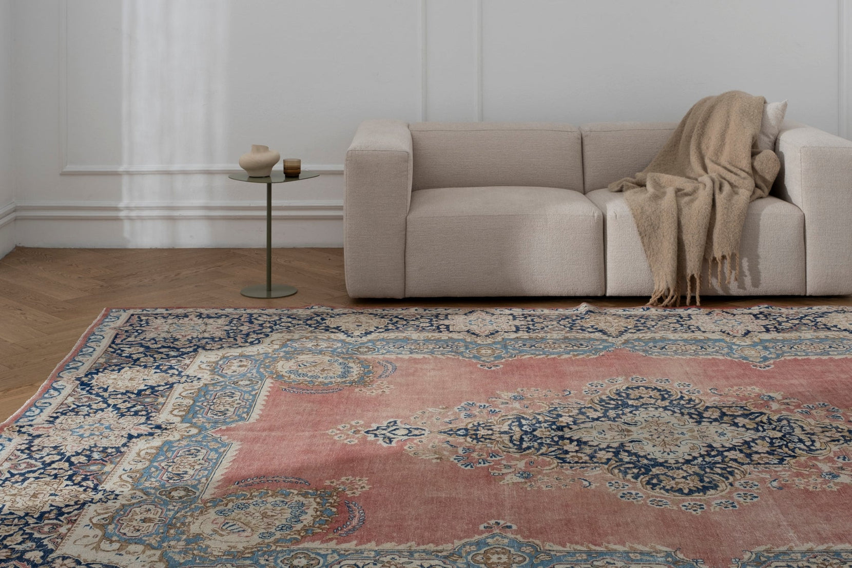 Zerane has been professionally cleaned; age-related wear and natural inconsistencies are inherent in these unique, handcrafted vintage rugs